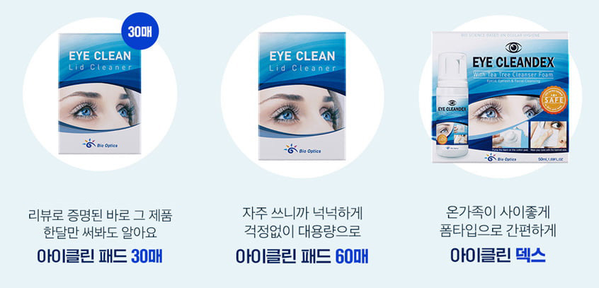 아이클린은 눈꺼풀 속 이물질과 모낭충 등을 위생적으로 닦아내는 눈 전용 청결제 입니다.